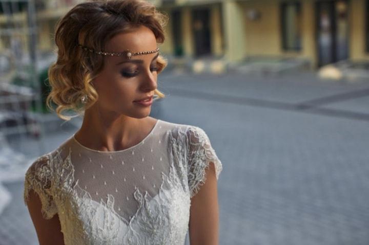 Anche nel caso di un taglio corto gli accessori da applicare al vostro hairstyle sono svariati e decisamente glam. Uno dei fattori che vi invitiamo a considerare prima di scegliere quello che indosserete è quello del make-up: nel caso in cui optiate per un trucco da sposa naturale potete puntare su accessori più sofisticati perché il risultato sarà armoniosamente equilibrato; se invece il vostro make-up sarà più marcato e avrà delle nuance intense allora vi consigliamo di prediligere accessori più sobri. Sia su su un bob ondulato che su un pixie cut è possibile collocare una veletta retrò con inserti di perle, una fascetta charleston o una preziosa tiara.