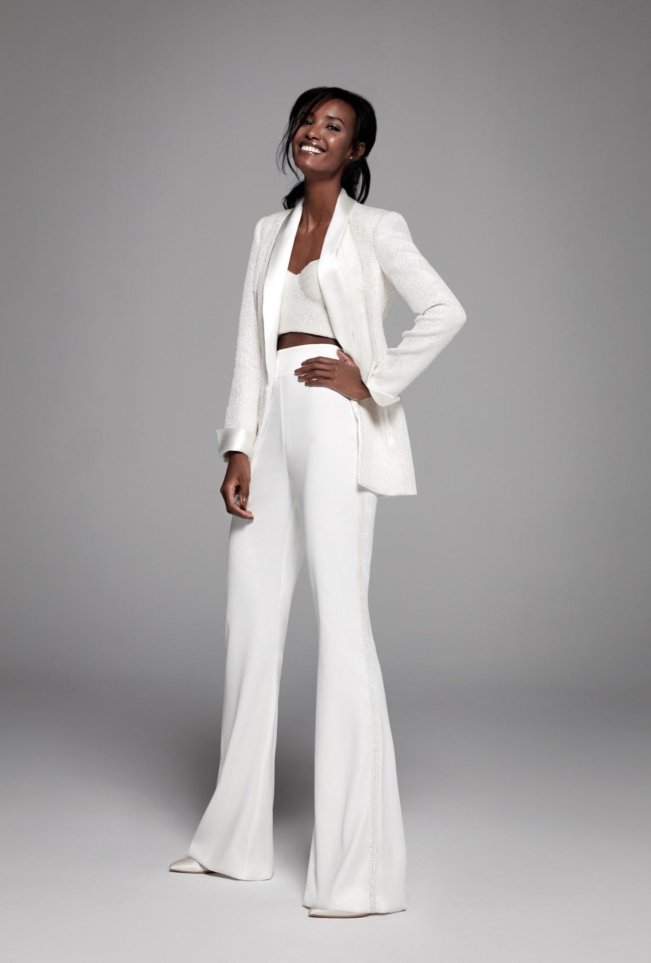 La creazione di qualsiasi outfit, classico o originale che sia, parte sempre e solo da lì: la scelta dell’abito! Ma per discostarti da quell’immaginario tipicamente tradizionale, esistono numerose possibilità che potrai prendere in esame a seconda del tuo gusto personale e dell’impronta stilistica del matrimonio. Uno dei trend intramontabili in fatto di mise nuziali alternative è certamente quello di indossare dei pantaloni! Un completo spezzato formato da blazer e da un elegante paio di pantaloni dal taglio quasi maschile rappresenta un outfit sofisticato e di gran classe ed è particolarmente indicato per le cerimonie dal rito civile che si svolgono dopo il tramonto o per le seconde nozze.