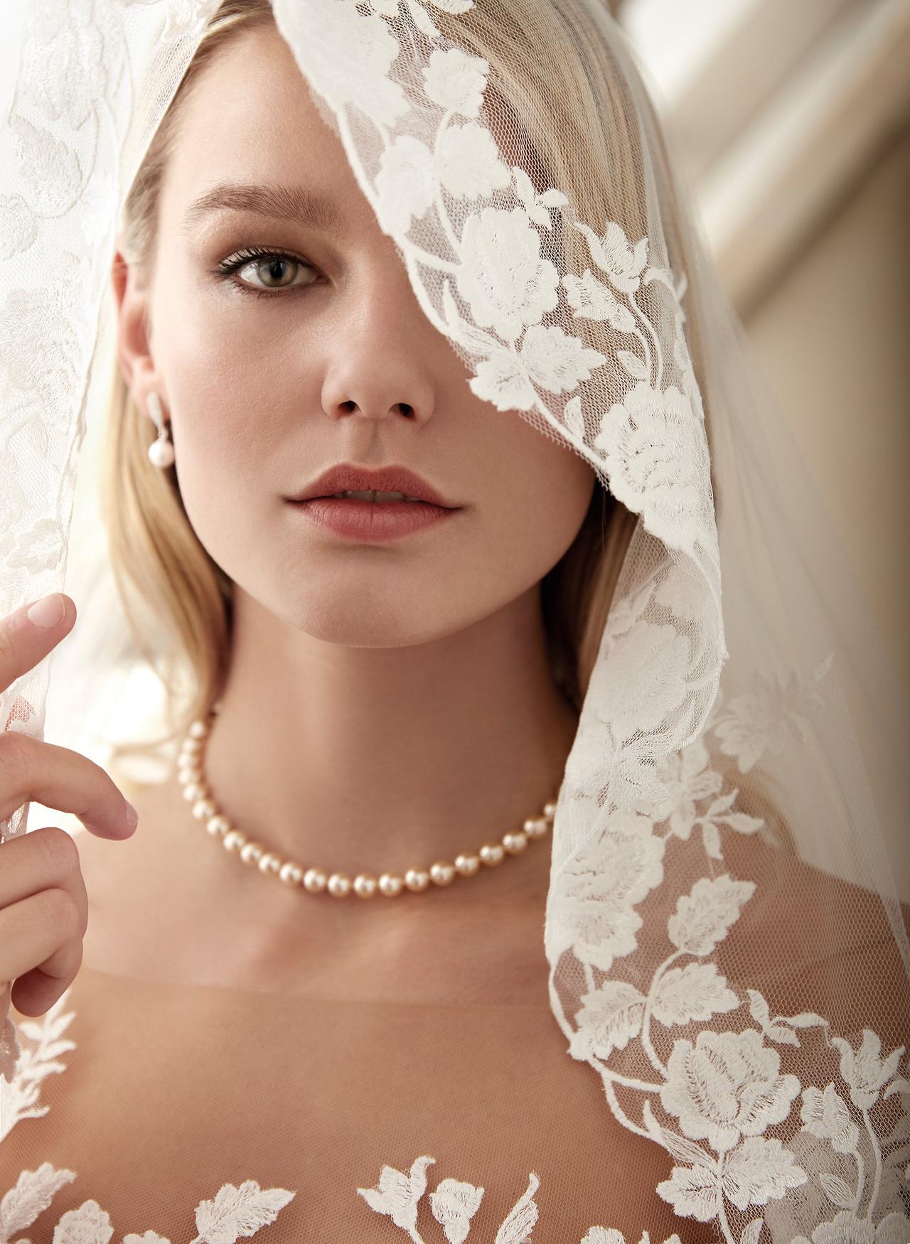 - velo a cappella: simbolo delle cerimonie solenni, il velo a cappella poggia sul pavimento formando esso stesso lo strascico del vestito. È perfetto da abbinare ad abiti da sposa semplici.