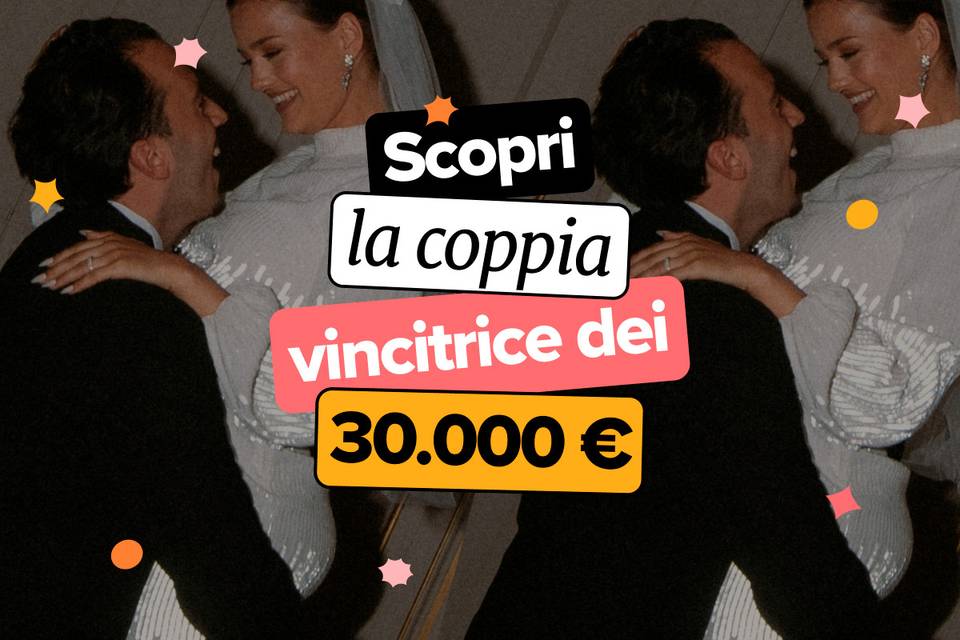 Partecipando al concorso “Vinci 30.000 € per il tuo matrimonio”, accetti di cedere a Matrimonio.com i diritti delle immagini e dei video del tuo matrimonio, così che Matrimonio.com possa condividerli e promuovere il concorso. Matrimonio.com collaborerà con te e con i fornitori da te scelti per raccogliere contenuti, pubblicare la storia del tuo matrimonio e promuoverla sui media.