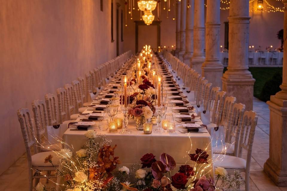 Gli allestimenti, curati con estrema attenzione, abbracciano i sentimenti con colori tenui, luci calde e linee essenziali, creando un’ eleganza dolce e mai eccessiva. La mise en place, raffinata e armoniosa, diventa un piccolo scenario d’amore: fiori soffici, trasparenze leggere e dettagli che parlano al cuore.